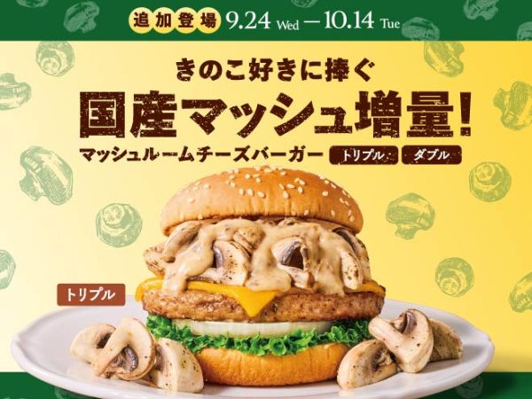 2019.09.10新メニュー 秋限定!あの大人気バーガーが今年も味わえる! 『クラシックマッシュルームチーズバーガー』 期間限定販売